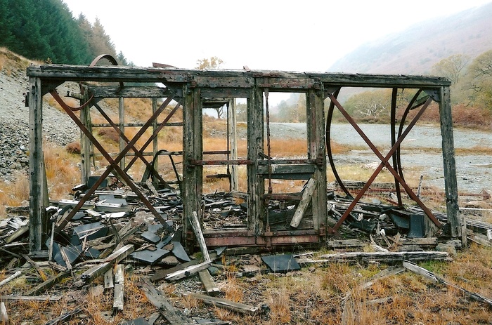 The landscape itself reveals explicit visual records of former industries, particularly mining areas such as Cwmystwyth, Cwmsymlog and Cwmrheidol as well as scores of other smaller workings, have all had a profound influence on the landscape of Wales. Driving through Cwmyswyth lead mines one can not help but be moved by the grey slag heaps and stone ruins, the surrounding steep hills cut with deep seams and open caverns, the veins and scars of extensive and well trodden workings.