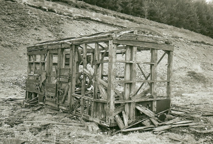 So many times I have found myself off the beaten track with my camera and tripod, high up in the hills of the Cambrian Mountains believing few could have walked these hills before me and then to discover, quite unexpectedly, perhaps beneath a small cluster of Scots’ Pine trees the few barren walls of a shepherd’s dwelling or alongside a mountain stream the remnants of machinery, abandoned and left to rust, once the mining industry had become unprofitable.