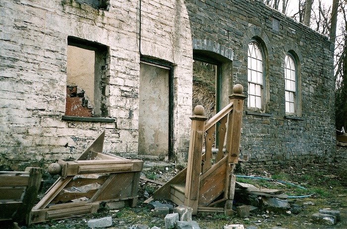 Below are some colour snapshots taken throughout the years. They show various types of empty buildings. In many respects all those empty cottages I’ve visited I have, in hindsight, wished I had taken at least one 5x4inch negative of the property. Perhaps I thought at the time they did not warrant the cost of a sheet of film due to their small size or lack of architectural interest; perhaps I considered them unworthy due to the seemingly vast amount of empty buildings that scatter the high and low lands of Ceredigion. Nonetheless these colour images must, for the time being, suffice.