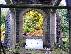 By D hughes: I was personally acqainted with the intrepid squatter who poured considerable resources - mainly physical, into the attempted partial restoration of this ruin. I hail now as I did then, his unquenshable zeal in the face of such monumental impossibility. I could never fathom out why on earth he should want to attempt it, - it's a horrid mish mash of architectural styles, impressive in a kind of awsome, crude way but splendourless. The mouldings and stones(though not the stonework) could be put to some grander use I'm sure. I believe the owner hails from Canada and made a court appearance locally in order to challenge the shaky legality on which the squatter based his occupancy and indeed possession. I'm minded that a better outcome would have been to allow the misguided yet committed squatter to continue with his endeavours; better this than the sad and blatent neglect which is now inexorably reducing the edifice to rubble. A shame on those owners who seem to be paralysed by such inertia that not even basic preservation is attempted.